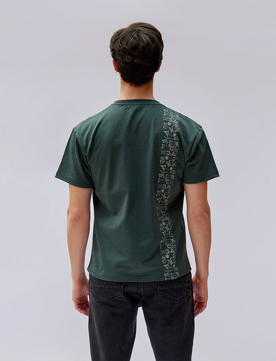 Crafted from 100% cotton, this unisex green t-shirt stays true to Slush’s signature style. Continuing the SJ tradition with its story and fabric, this green tee with an off-white back print remains one of the most beloved pieces thanks to its premium texture and rich color. The full-length design on the back pays tribute to the ancient Nazca civilization. Made for long-lasting wear.