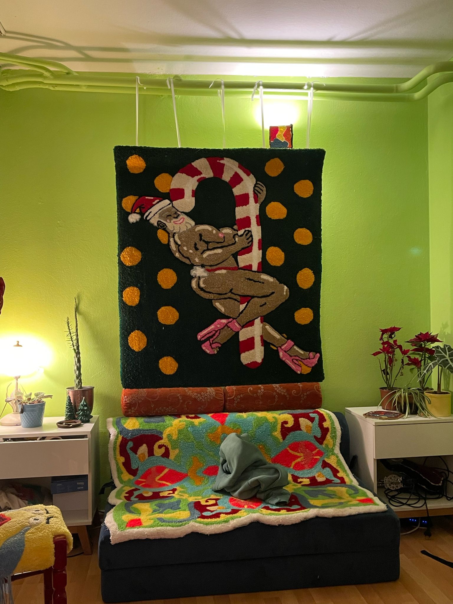 Using various thread weaving techniques, he brings his art to life, particularly through Punch, tufting, and different trimming methods. His inspirations stem from the fusion of tropicalism, symbolism, and orientalism, combined with the chaotic vibrancy of colors, which he integrates into carpets and tapestries. Through these techniques, he aims to create a unique mode of expression, focusing on cultural diversity, sensory depth, and multi-layered meanings in his works.